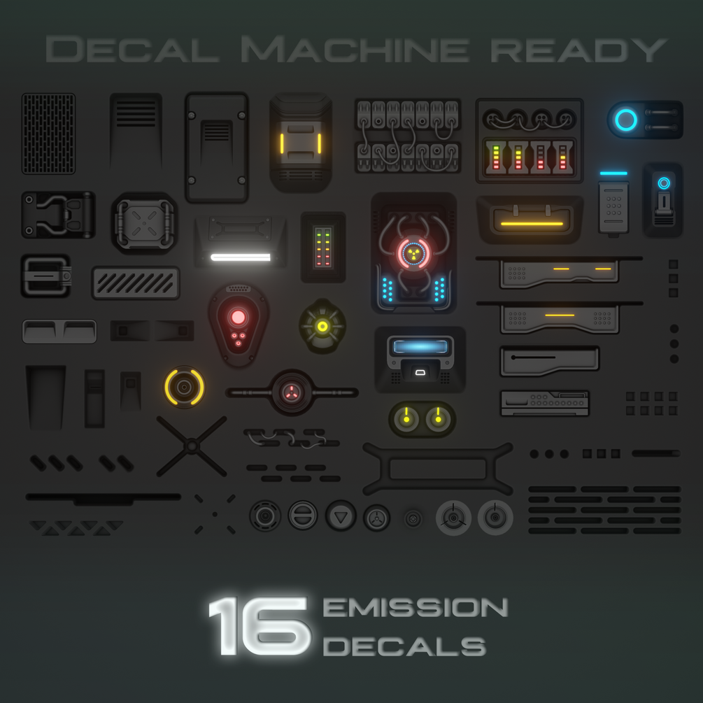 Sci-Fi decals pack with 54 various decals which 16 of is emission lighting.